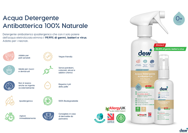 bambino; uccidendo il 99,99% di germi, batteri e virus con il solo potere