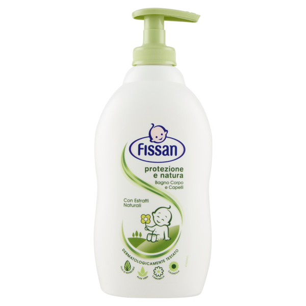 Fissan protezione e natura bagno corpo e capelli Deterge dolcemente grazie alla sua formula esclusiva con Estratti Naturali di Aloe Vera, Olio di Mandorla, Calendula e Camomilla. Cremoso, delicato, a pH neutro e privo di saponi alcalini e alcol, lascia la pelle del bambino morbida, idratata e protetta. È ideale per l'igiene quotidiana. Ingredienti e proprietà: - Aloe Vera: nota per l'azione antiarrossamento - Olio di mandorla: noto per l'azione emolliente ed idratante - Calendula: nota per l'azione lenitiva - Camomilla: nota per l'azione protettiva Formula sviluppata per la pelle di neonati e bambini: - Dermatologicamente testata - Delicata sugli occhi - pH neutro
