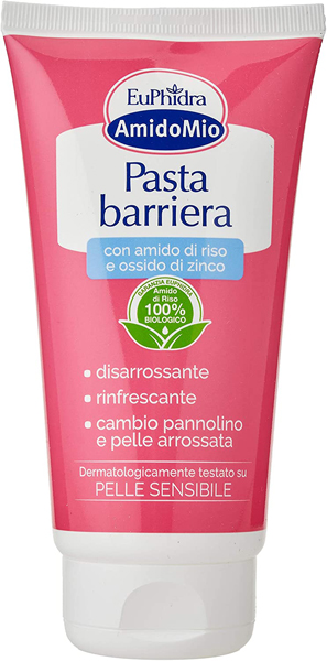 PASTA BARRIERA è idelae per la protezione quotidiana della pelle delicata dei bambini fin dalla nascita. Previene e lenisce arrossamenti e irritazioni nei punti più sensibili (pannolino, pieghette cutanee, zone soggette a sfregamenti meccanici). AMIDO DI RISO da agricoltura biologica, TALCO e OSSIDO DI ZINCO (concentrazione totale 21%) garantiscono un’azione lenitiva e protettiva regalando un sollievo immediato.