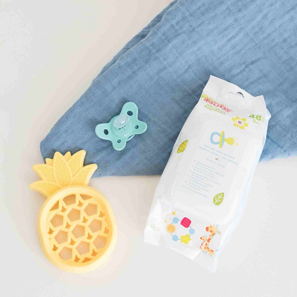 Le salviettine per succhietti e massaggiagengive sono realizzate con ingredienti naturali e Citroganix e mantengono succhietti e massaggiagengive puliti ovunque tu sia, senza bisogno di risciacquare.