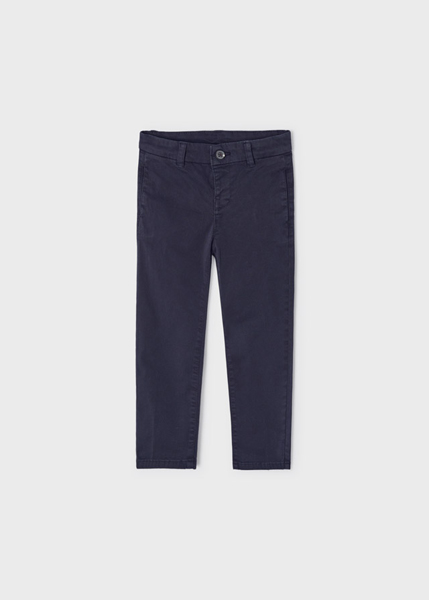 Capo ECOFRIENDS contiene cotone organico. Pantalone modello chino per bambino con taglio slim fit che definisce la siluette senza rinunciare all'eleganza. Chiusura con un unico bottone. Le taglie da 6 a 9 sono dotate di cerniera per agevolare la vestibilità. Questo articolo presenta un bagno di colore speciale; per questo motivo le rifiniture potrebbero non essere uniformi o il colore potrebbe variare con i lavaggi.