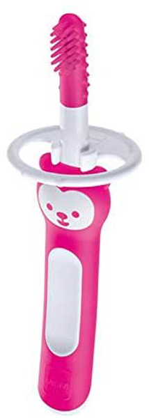 Mam massaging brush – spazzolino per bambini per la cavità orale l'igiene orale è una pratica che può anticipare la crescita del primo dentino, in quanto riguarda anche le gengive. per questo mam ha ideato il massaging brush, lo spazzolino con morbide setole massaggianti. queste setole extra morbide situate nella parte anteriore, realizzate in tpe, puliscono delicatamente rimuovendo placca e batteri. inoltre, esse sono pensate per rimuovere il dolore durante la prima dentizione. l'impugnatura dello spazzolino è compatta, antiscivolo ed ergonomica, in modo da facilitare il processo di apprendimento dell'impugnatura da parte dei più piccoli. le parti massaggianti sono disposte sia ai lati che sul retro della testina morbida, adatta a qualsiasi componente della cavità orale. inoltre, mam ha dotato il suo massaging brush di un anello di protezione per la gola, che rende questo articolo ulteriormente sicuro, in quanto aiuta a mantenere lo spazzolino a una distanza di sicurezza dalla parte posteriore della bocca del bambino e quindi dalla gola. il mam massaging brush è adatto ai bimbi di 3+ mesi, è conforme alle norme en 71-3 e en iso 20126:2012 ed è naturalmente privo di bpa e bps. il colore verde è adatto sia ai bambini che alle bambine. dettagli del prodotto: mam massaging brush, spazzolino per la cavità orale da 3+ mesi con manico compatto ed ergonomico testina con setole morbide in tpe protezione che impedisce alle setole di raggiungere la gola privo di bpa e bps