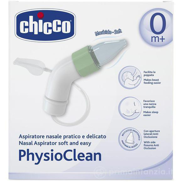 Pratico e delicato, l'aspiratore Nasale PhysioClean di Chicco permette l'eliminazione delle secrezioni nasali in eccesso, che possono impedire al bambino di respirare bene. La forma ergonomica agevola la mamma durante l'utilizzo e il beccuccio morbido è indicato per il nasino sensibile e delicato dei più piccoli. I beccucci monouso, con filtro già inserito, garantiscono un'elevata igiene.