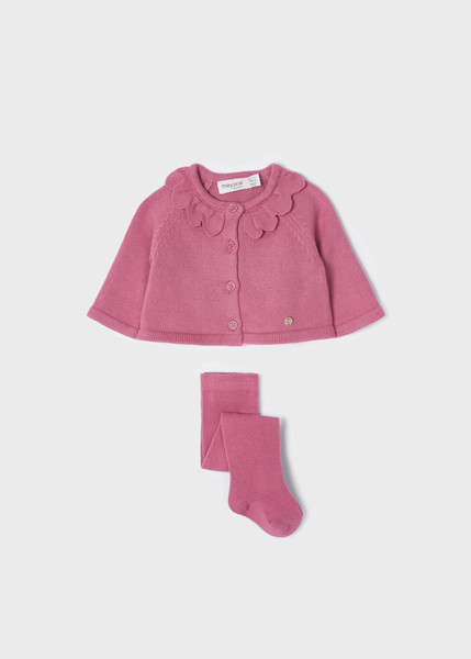 Capo ECOFRIENDS contiene cotone organico. Cardigan manica lunga per neonato. Girocollo con volant. Chiusura con bottoni nella parte anteriore.
