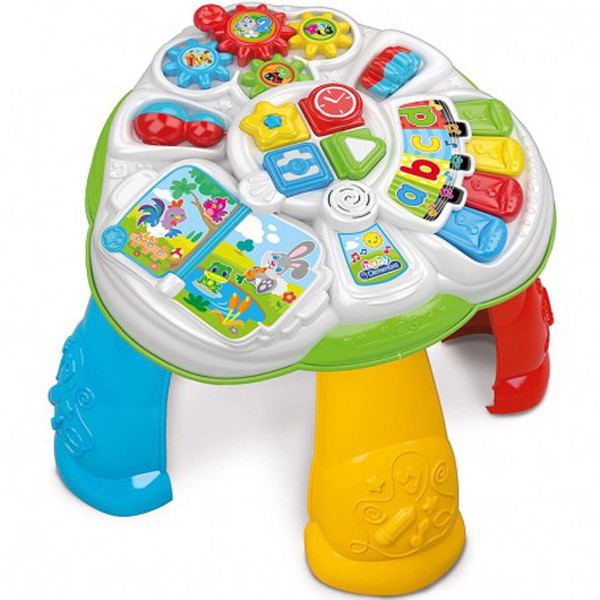Un coloratissimo tavolo ricco di attività educative per apprendere i numeri, le lettere, le forme e i colori, i nomi degli animali e i loro versi.