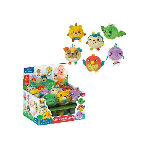 Sei dolcissimi animaletti tutti da coccolare... per giocare in un mondo di dolcezza! Ogni personaggio e' a portata di bambino! La forma sferica, la dimensione e la consistenza supermorbida favoriscono lo sviluppo della manualita' dei piu' piccoli. I personaggi sono arricchiti con elementi fruscianti, tessuti diversificati e sonaglino interno per divertire i piccoli e stimolarne la percezione tattile e uditiva, sono 100% lavabili per giocare in tutta sicurezza. Tramite un'asola si possono appendere e portare sempre con se'. Cane, orso, riccio, uccellino, narvalo e draghetto diventeranno presto i migliori amici di ogni bambino!