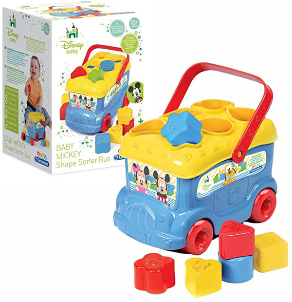 Un simpatico autobus contenitore per stimolare il bambino a riconoscere le forme e i personaggi Disney preferiti.