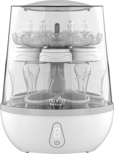 Ultra veloce e sicuro, lo sterilizzatore a vapore SteriEasy sterilizza fino a 6 biberon, tiralatte ed accessori in soli 6 minuti mantenendo il contenuto sterile fino a 24 ore.